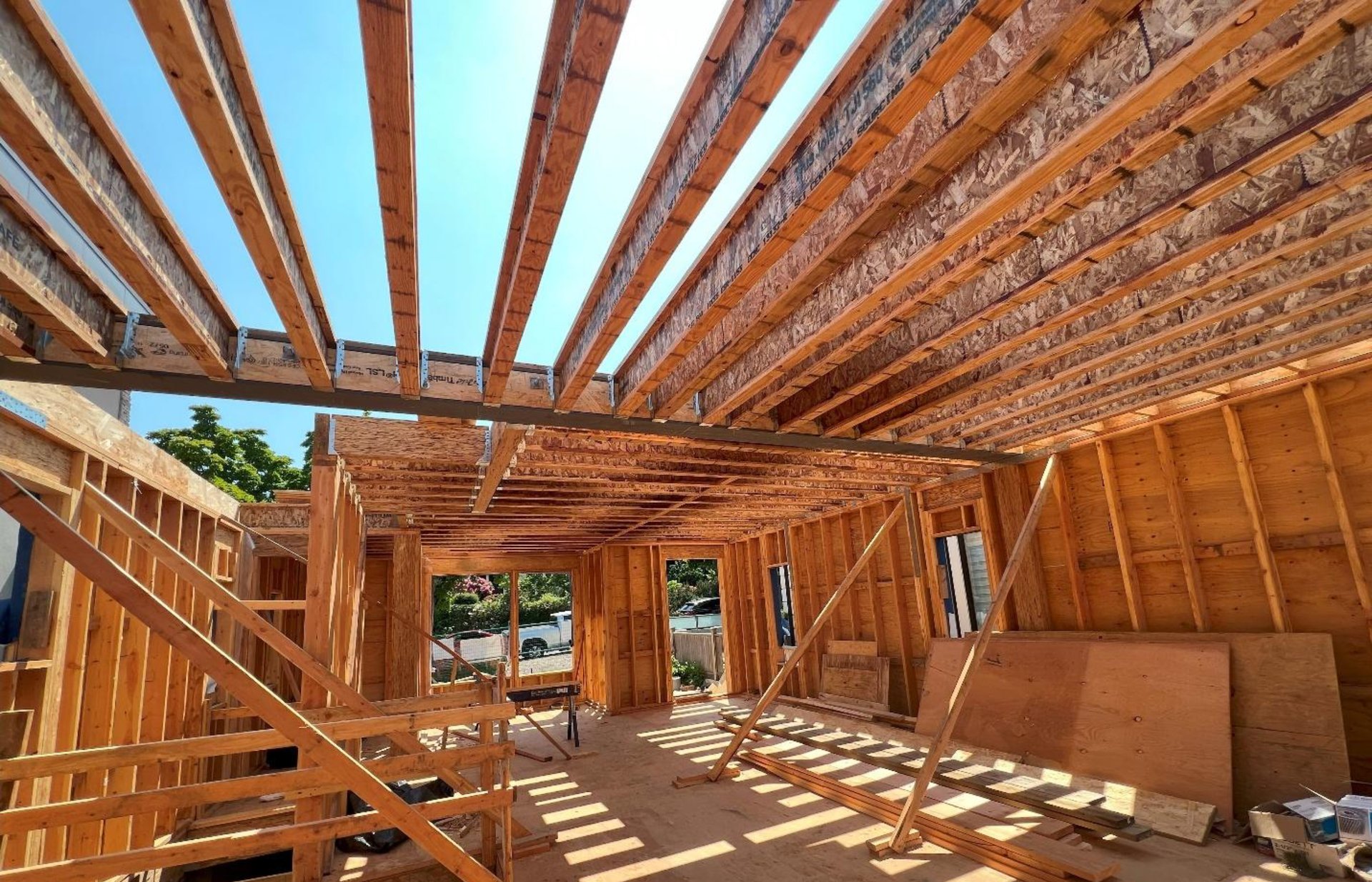 Fir Lumber is used in all our homes vs all homes use spruce lumber. Fir Lumber has stronger compression strenght and is more dense and moister resistant. They use fir lumber in schools and mid rise buildings. We also use bigger washers at the anchor points from wood to concrete base, structural nails, beam brackets with lag screws to secure all beams . This is simply not added in 95 percent of homes.